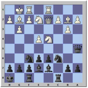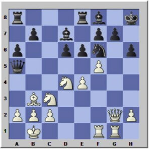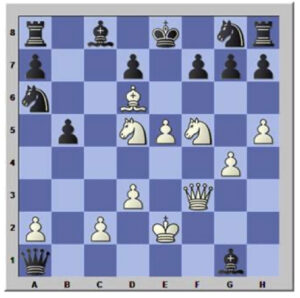 Zoals we in de vorige aflevering al konden lezen is het wereldkampioenschap van Botwinnik (1948-1963) twee keer voor een jaartje onderbroken geweest. Eerst door Smyslov (1957-1958). Maar de revanchematch in 1958 won Botwinnik weer. In dat jaar begon de cyclus opnieuw en won Tal het kandidatentoernooi. Let op: het leeftijdsverschil tussen beide kemphanen is maar liefst 25 jaar! Het opkomende talent (bijnaam ‘de Tovenaar uit Riga’) won meteen de eerste partij. En na vier remises moest Botwinnik opnieuw het onderspit delven. Wellicht is deze 6e partij uiteindelijk de beslissende partij in deze match geweest. Uiteindelijk wordt Tal de 8e Wereldkampioen. De eindstand is 12,5-8,5!