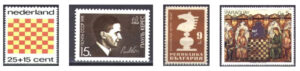 Wat je ook veel ziet, is een gestileerde afbeelding van een of meer schaakstukken. Het spreekt vanzelf, dat dan het Paard bij de postzegelontwerpers heel populair is!