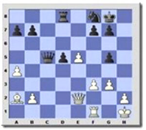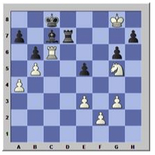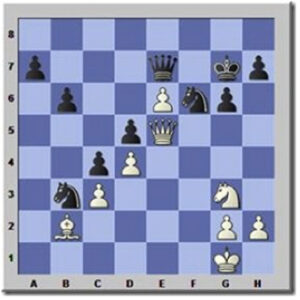 Kijk maar eens naar zijn offers op de zetten 30 en 31. Door deze twee offers wordt de zwarte koningsstelling compleet uit elkaar geslagen. De vrijpion e7 doet de rest.