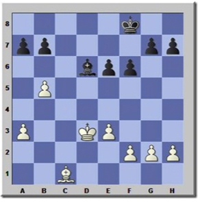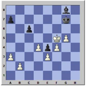[Vrijwel ieder lid van de Sassenheimse Schaak Club noemt die pion op h2 een ‘vergiftigde pion’. Fischer moet hier een misrekening gemaakt hebben. Zijn loper gaat verloren tegen twee pionnen, zoals uit de volgende zetten blijkt]: 30.g3 h5 31.Ke2 h4 32.Kf3 Ke7 33.Kg2 hxg3 34.fxg3 Lxg3 35.Kxg3 Kd6 36.a4 Kd5 37.La3 [In het hierna volgende, ook theoretisch bijzonder interessante eindspel van loper tegen twee pionnen, houdt Spassky het hoofd koel en gaat Fischer het onderspit delven. Ik verwijs nu graag naar de Vervolgcursus van Teleac over de Match van de eeuw (Teleac-seizoen 1972-1973), waarin Euwe zeer diep ingaat op deze laatste serie zetten]: Ke4 38.Lc5 a6 39.b6 f5 40.Kh4 f4 41.exf4 Kxf4 42.Kh5 Kf5 43.Le3 Ke4 44.Lf2 Kf5 45.Lh4 e5 46.Lg5 e4 47.Le3 Kf6 48.Kg4 Ke5 49.Kg5 Kd5 50.Kf5 a5 51.Lf2 g5 52.Kxg5 Kc4 53.Kf5 Kb4 54.Kxe4 Kxa4 55.Kd5 Kb5 56.Kd6 1–0 Wat hierna gebeurde? Zie de volgende aflevering. (Helaas is dit de laatste aflevering van Henk Hietbrink – red.)