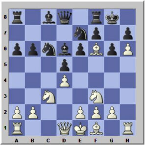 We beginnen met de 1e partij. De start is rustig en staat bekend als een van de normale varianten van het Nimzo-Indisch.