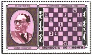 Het zal geen verbazing wekken, dat we Botwinnik op zeer veel postzegels uit de hele wereld tegenkomen. Immers, deze zesde Wereldkampioen mocht die titel dragen van 1948-1957,