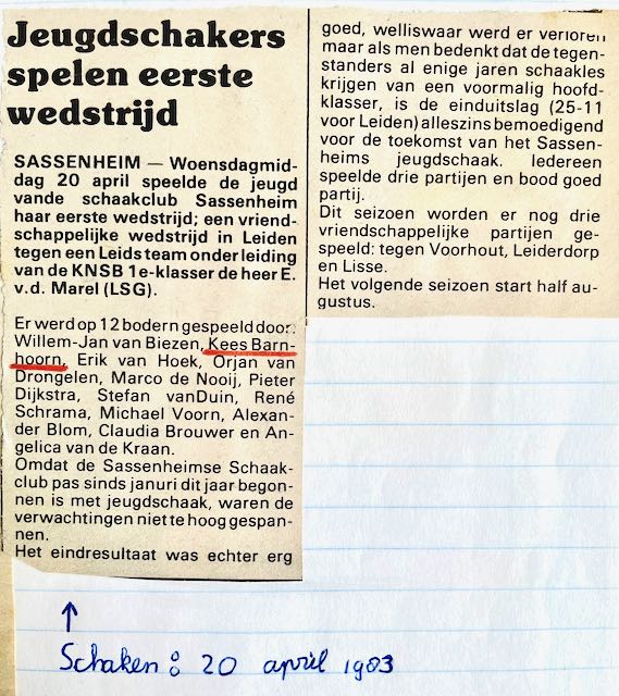 Waar er leden vertrekken komen er ook nieuwe bij, dat wil zeggen, in twee van de drie gevallen zijn het ‘ouwe nieuwe’. Marco de Nooij en Kees Barnhoorn waren al in 1983 (!) jeugdlid van SSC. Wanneer en waarom ze destijds afgehaakt zijn is niet helemaal duidelijk maar ook niet belangrijk. Belangrijk is dat ze nu weer lid zijn geworden! Overigens heeft diezelfde Kees een aantal jaren knipsels verzameld (heel mooi voor het jubileumboek!), dus bijgaand krantenknipsel – met bewijsstuk A – is met dank aan hem.