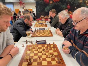 Dertiende klinkt niet slecht als je weet dat er zo’n 42 viertallen uit de Haagse- en Leidse Schaakbond traditioneel deelnamen aan dit snelschaakkampioenschap van de twee regiobonden. Maar ik zal jullie meteen uit de droom helpen. We bakten er niets van als SSC. Op rating waren we ingedeeld in de C-groep van veertien ploegen en we speelden in twaalf ronden twee keer gelijk (4-4 tegen Leithen 3 en LSG 5) en behaalden zodoende twee matchpunten, en we wonnen in de laatste ronde van onze mede-hekkensluiter Leithen 4 (4½-3½) waardoor we toch nog voorlaatste (dus dertiende) werden. Poeh, gelukkig niet laatste.