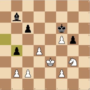 Stand na zet 36. Op zet 37 doet wit (Paul): 37. Ne4+ en zwart geeft op