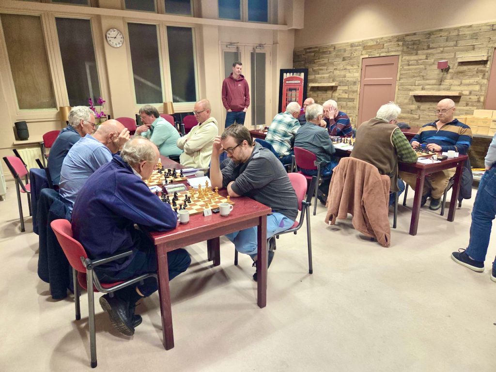 In ons Franse huis werden we gelukkig enigszins op de hoogte gehouden (via de team-app door o.a. secretaris Jelle e.a.) over de voortgang van het team tegen kampioen Utile Dulci. Het was spannend en er werd door ons team goed gespeeld, zo bleek. Het kampioensteam uit Oude Wetering had echter niets aan het toeval overgelaten en kwam op voltallige sterkte naar Sassenheim. Ze brachten gemiddeld maar liefst bijna tweehonderd ratingpunten meer achter de borden. Aan vooruit spelen van Jeffrey en Jan B. werd helaas door UD niet meegewerkt.