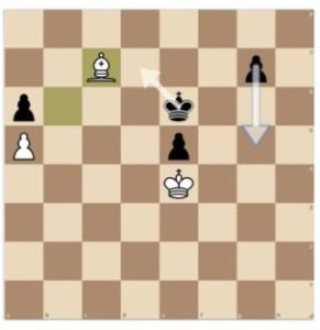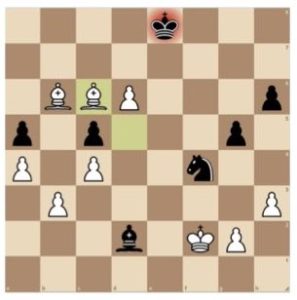 45. Lc6 hier laat zwart zich verleiden om Pe6 te spelen. Zijn paard wordt gepend en de andere loper kan naar d8.