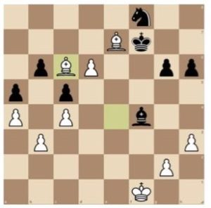 23 Pd5 zwart ruilt de loper voor het paard en ik krijg een vrijpion. Nu moet ik kunnen winnen.