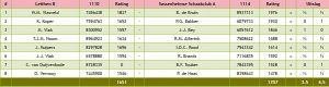 Al snel werd een 0-2 voorsprong genomen dankzij snelle winstpartijen van Piet en Bernard. Bernard wint wel vaker snel in de wedstrijd en dit keer heb ik daar weer niets van meegekregen, maar snel was het. Piet had een boze tegenstander toen hij hem wees op de schaakregel ‘aanraken is zetten’. Bij een pionnenruil in het centrum won Piet een pion, ware het niet dat er een loper ‘en prix’ stond. De Leithenaar vergat het schaak en moest toen met z’n dame het schaak opheffen, waarna Piet na dameruil een pion en ook nog ‘gewoon’ een loper won. De boze tegenstander was het daar niet mee eens en al mopperend – ‘als het zo moet dan geef ik op’ – verliet hij de zaal.