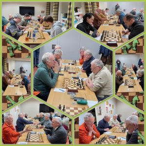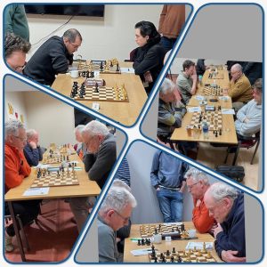 We waren voor ons doen meer dan op tijd en zo waren er meerdere leden aanwezig om de borden op te zetten voor zowel de externe als de interne. Nadat onze externe wedstrijdleider Frans D. – speciaal gekomen voor deze wedstrijd – iedereen instrueerde over wat wel en niet mocht, sprong ik haastig met mijn telefoon in het rond om fotootjes te maken, want dat zegt nog altijd meer dan duizend woorden. Zeker bij schaken waar het muisstil is nadat de wedstrijd is begonnen … ????