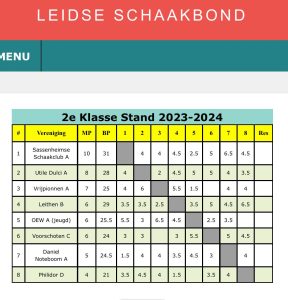 Vanavond een spannende avond. We spelen om het kampioenschap in de tweede klasse tegen Utile-Dulci. We gaan er met goede zin tegenaan. Tenslotte staan we al voor met 1,5 – 0,5, omdat er 2 partijen vooruit zijn gespeeld. Door Ignace op bord 5 (0,5-0,5) en Ron op bord 6 (1-0). Maar het werd een zeer spannende avond waar de emoties alle kanten op schoten.