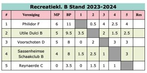 Jan B. scoorde 2 uit 4, Bernard en Piet beiden 2 uit 6.