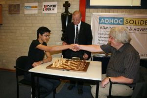 Vanaf ongeveer dag één heb ik geprobeerd Jan Timman in ons LCT te laten spelen. Ik heb hem goede condities en veel facilitair geboden, maar hij koos er in juli altijd voor om een Deens toernooi te spelen. Een round-robin schaaktoernooi – een tienkamp dacht ik – was voor hem een leukere uitdaging dan zo’n open toernooi als bij ons, met veel grootmeesters en sterke meesters uit binnen- en buitenland. Toch kan ik tevreden terugkijken op zijn deelname aan ons LCT doordat hij bereid was mee te werken aan één van de openingen van ons toernooi. Ons eerste lustrumtoernooi (7-17 juli 2011) werd geopend met een Rapid match (25+5) tussen Anish Giri en Jan Timman. Het zou eindigen in een 1-1 stand. Beide spelers wonnen een partij en beiden gaven na afloop voor de speciale gasten steekhoudend commentaar op hun gespeelde partij. Giri: ‘Ik begreep niets van dat pionoffer?’ vroeg hij aan Timman en deze antwoordde nuchter: ’Ikzelf ook niet, het was gewoon een blundertje…’ Deze live Rapidpartij is bewaard gebleven, met dank aan het internet en de Engelse website The Week in Chess.
