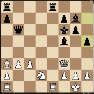 In mijn partij was het na zet 10 gedaan. Helaas miste ik een briljante afmaker op zet 18, een zet die ik overigens 2 zetten daarvóór nog wel in de berekening had meegenomen. Maar ik was even gaan roken, om daar rustig met mezelf af te spreken: houd je aan het vaste plan voor winnen met voldoende materiaal: consolideren, liquideren, promoveren. Zo zie je maar, roken is slecht voor je. Maar het is een leuke puzzel (zie diagram).